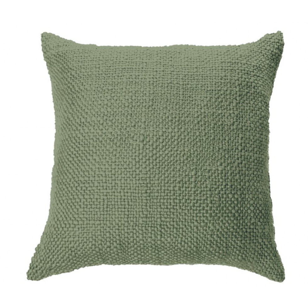 A soft, textured green cushion for a natural and warm decor.
