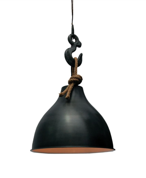 Inspiré de l’univers industriel, ce luminaire suspendu combine l'élégance du noir mat, la robustesse du métal et l’authenticité de la corde nouée. Son crochet décoratif en métal lui donne une présence imposante, idéale au-dessus d’un îlot de cuisine, d’une grande table ou dans un loft moderne. Finition soignée, look percutant et lumière chaleureuse : c’est l’élément déco qui fera toute la différence.