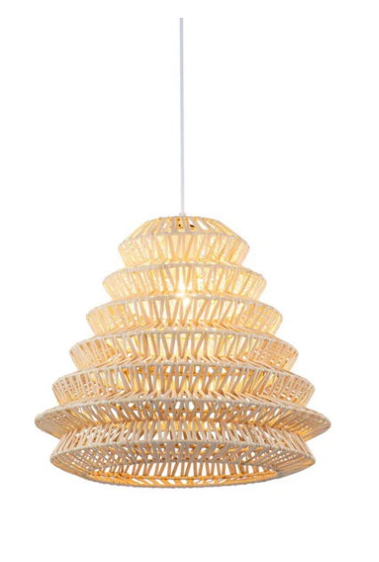 Le luminaire suspendu rotin naturel Didi est une véritable œuvre sculpturale qui attire tous les regards. Son design en étages coniques tressés crée un effet architectural spectaculaire, tout en diffusant une lumière chaleureuse. Idéal au-dessus d’une table à manger, dans un salon ou un hall d’entrée, ce luminaire incarne parfaitement le style naturel moderne. Sa structure légère en fibres végétales tressées lui confère à la fois caractère et douceur. Un choix raffiné pour illuminer avec élégance.